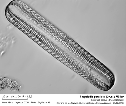 Diatomea de la familia de les Epithemiacees, amb unes dimensions de 105 x 20 µm.